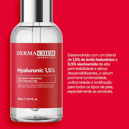 O Sérum Hyaluronic da Dermachem é um hidratante e iluminador formulado para todos os tipos de pele. Ele ajuda a reter a umidade natural, suavizar linhas finas e uniformizar a textura, deixando um “brilho instantâneo” e saudável.