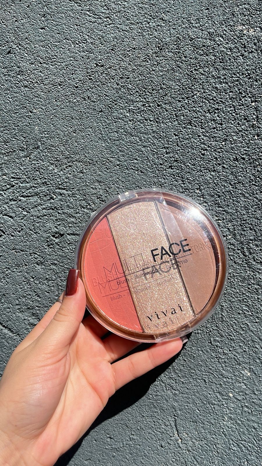 O Trio Multi Face da Vivai é o seu segredo para uma maquiagem rápida e completa. Combinando blush, iluminador e contorno, esta paleta oferece produtos de alta pigmentação e textura aveludada que se adaptam a todos os tipos de pele.